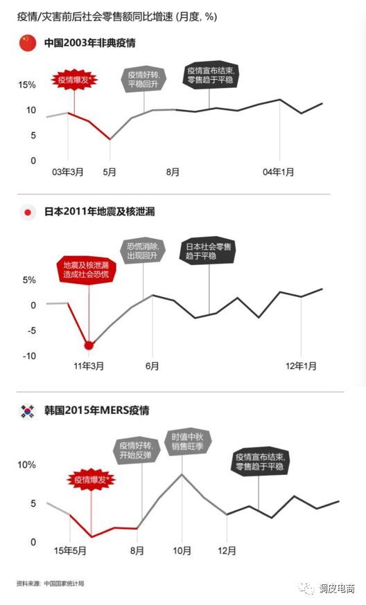 2003年SARS過後,中國的零售市場只是回到了災害前的正常水平,並沒有出現明顯的報復式反彈。日本2011年地震和核洩漏後也是類似的情況。