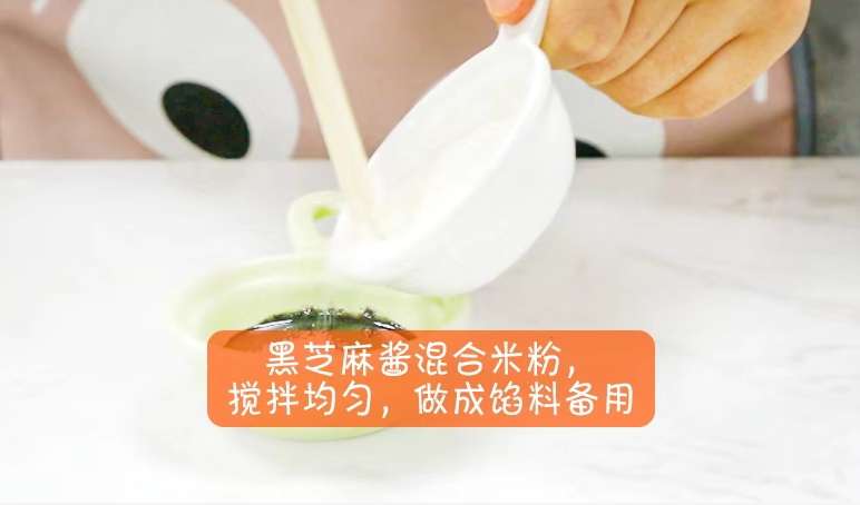 2.黑芝麻醬混合米粉,攪拌均勻,做成餡料備用。