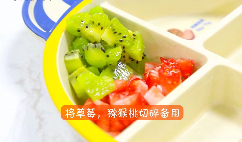 5.將草莓,獼猴桃切碎備用。
