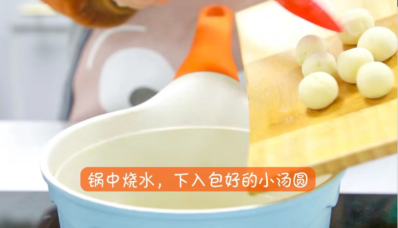 6.鍋中燒水,下入包好的小湯圓。