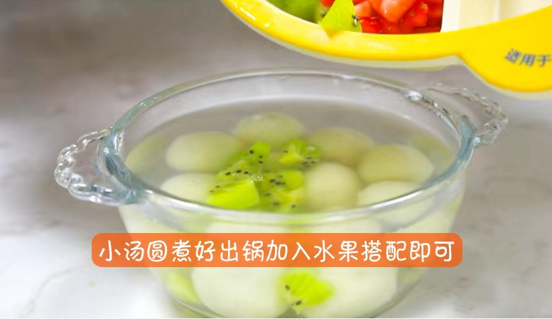 7.小湯圓煮好出鍋加入水果搭配即可。