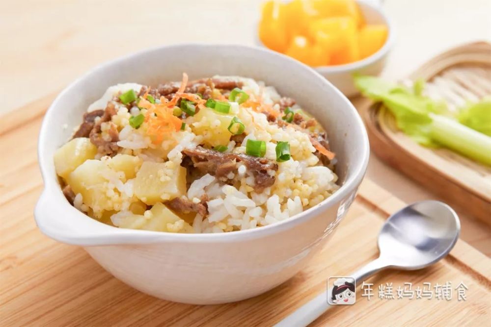 都知道牛肉補鐵,但是光炒菜的話,會比較柴比較硬,寶寶不好咀嚼。牛肉+土豆,做成燜飯,煮久一點,又軟又爛,小寶寶也能吃得動。