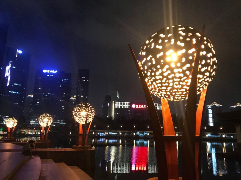 千燈湖的每一盞燈,照亮了每一個行人,承載了不同的人生故事。忙碌了一天的人們,有人帶著小孩來這裡玩耍,也有一些滑輪、街舞愛好者在廣場上留下快樂的身影,而在湖邊小碼頭則是情侶們的約會聖地,一路走過來,隱隱約約看到碼頭上的情侶你儂我儂,像極了的偶像劇裡的浪漫故事情節。