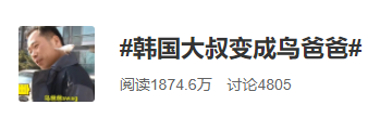 而也正或許如此,如今韓國大叔與鳥生活的這段視頻也被成功推上了微博熱搜,並吸引了超1800萬的閱讀關注。
