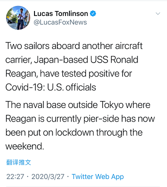 目前還不清楚航母的護航艦中是否也有新冠病毒感染者。週四,美國代理海軍部長托馬斯·莫德利承認檢測數量是有限的。