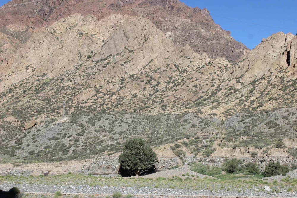這張照片就是我在新疆的路途中隨意拍了一張相片,感覺這山特別神奇,下面隻長著一棵大樹,而山上卻長著許多的小草,但山頂上卻沒有一顆草,所以我說新疆是一個非常神奇的地方。