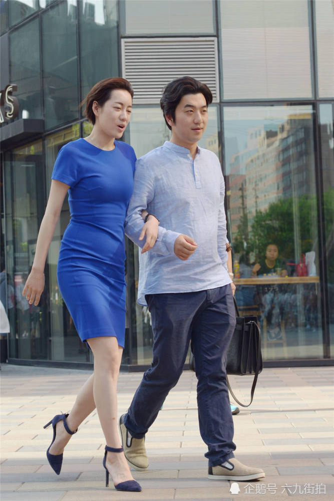 其實夏初時節的逛街穿搭,也不是很難,以簡約為主,這位美女選擇一款藍色緊身連衣裙,這款連衣裙在展示身材的同時,也會對身材有要求,就是如果你腹部微胖,不建議你穿這款裙子,或者你要一直堅持吸一口氣,這樣才會很美,搭配一雙黑色尖頭細跟單鞋,繞踝的一字帶,簡約精緻,色彩搭配也很簡單。